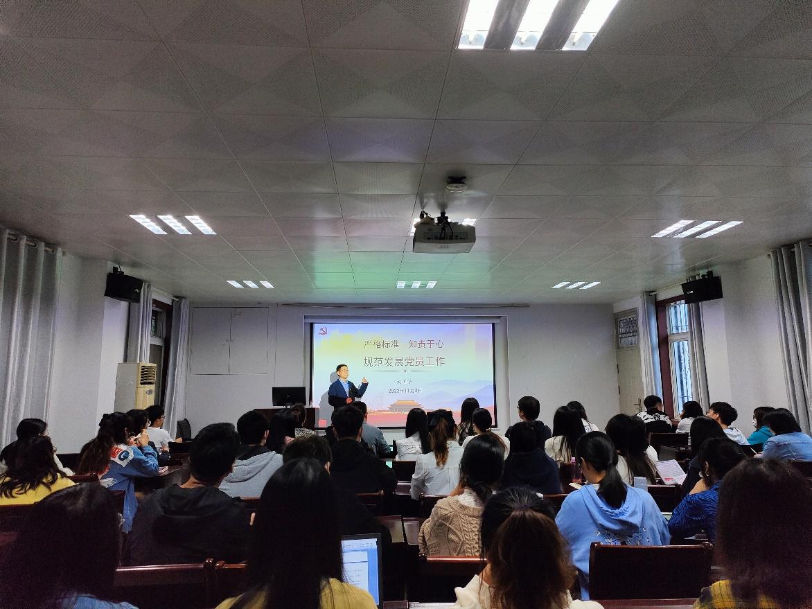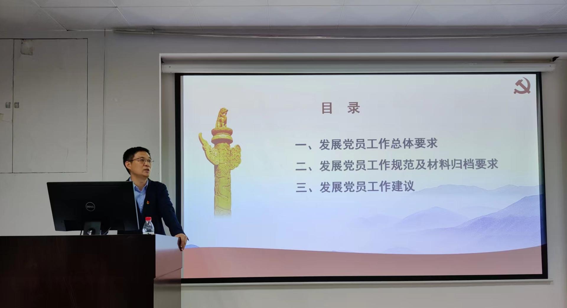 入选“全国党建工作示范高校”培育创建单位,对基层党建工作提出了更高质量的要求。随后以《严格标准,知责于心,规范发展党员工作》为题,讲述了发展党员工作总体要求和工作规范,强调规范发展党员程序、确保党员档案的完整性和真实性是基础性工作;并结合含羞草