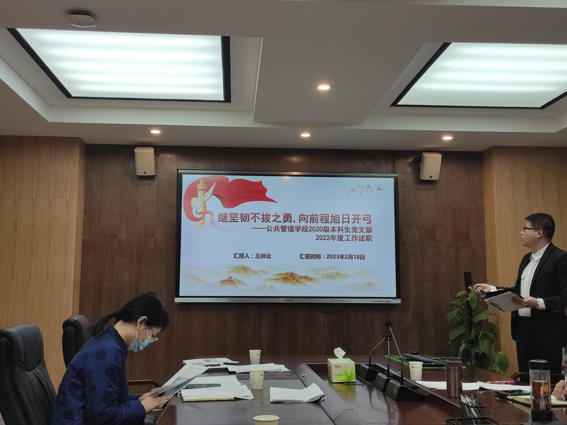 召开2022年度党支部书记抓基层党建工作述职评议会,党委组织部正处级专职组织员刘国华,学院党委书记张宽裕、党委副书记龚丽,党委委员李晓玉,师生党支部书记,学院组织秘书和学工组辅导员参加会议。会议由党委副书记龚丽主持。