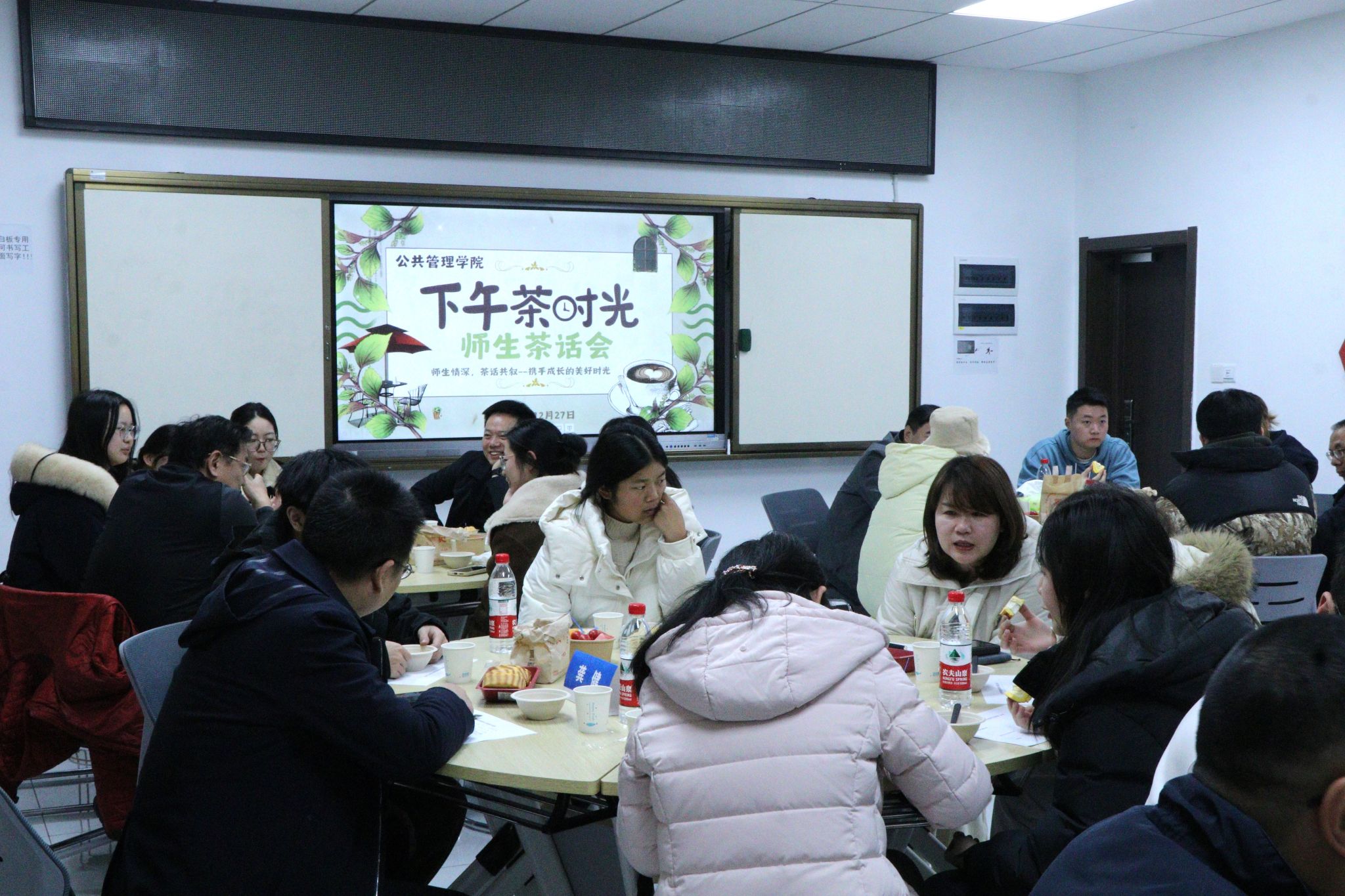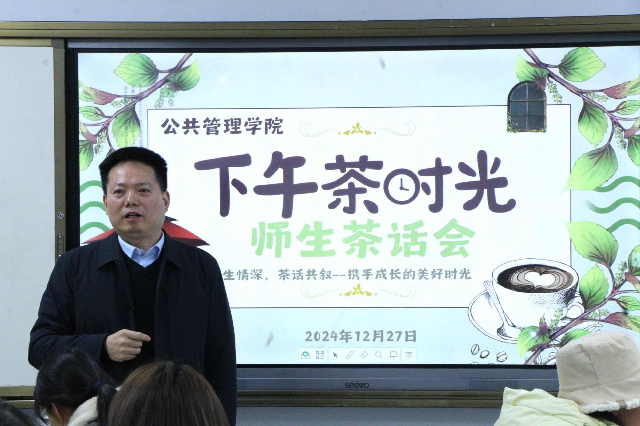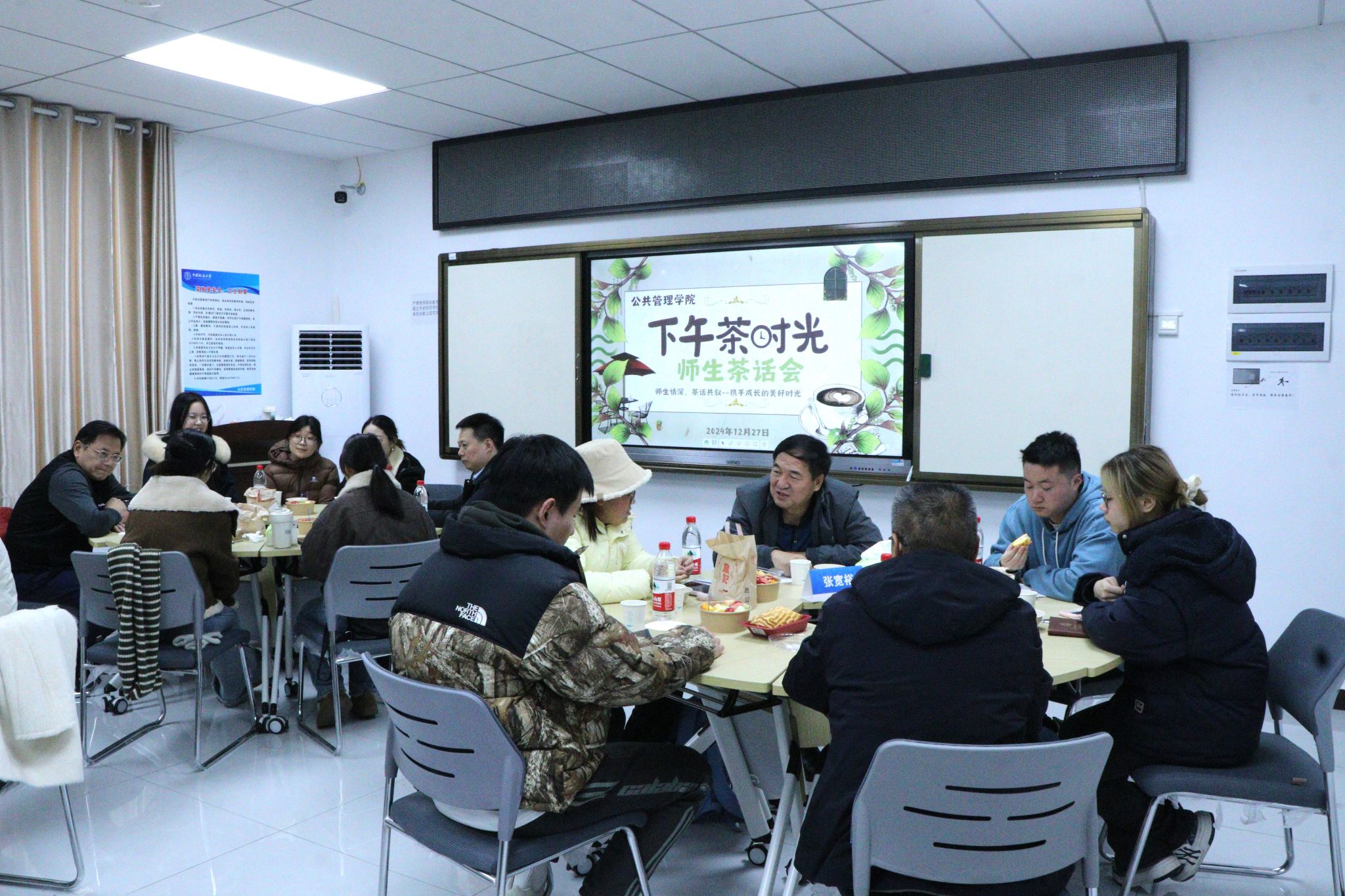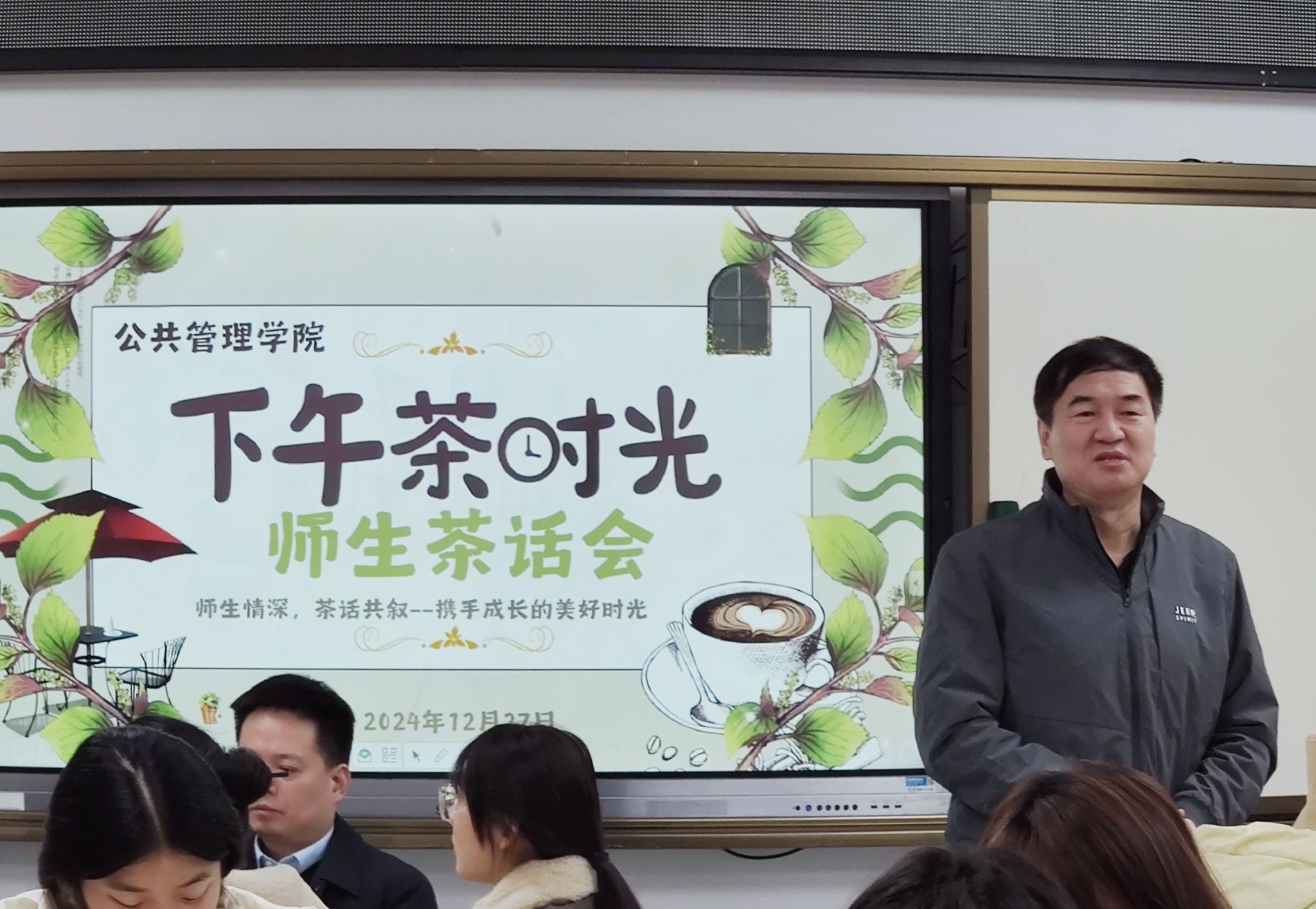 举行“师生情深,茶话共叙”师生茶话会。副校长、院长胡守庚,院党委书记张宽裕,院党委副书记龚丽,副院长龚健、朱江洪、吕凌燕,各系教师代表,教学秘书胡玲,本研学生代表参加活动。活动由院团委书记李姝慧主持。