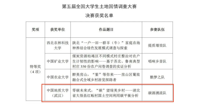 徐枫教授和经管学院金贵教授共同指导的学生团队在激烈的竞争中脱颖而出,参赛作品《零碳未来式,“碳”望绿美乡村——湖北省大悟县红畈村国土空间碳平衡分析》荣获全国特等奖。
