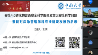副院长李世祥教授邀请,中南大学安全科学与工程学科教授,博士生导师,中南大学安全理论创新与促进研究中心执行主任、安全科学与应急管理研究中心副主任王秉教授以“安全4.0时代的普通安全科学图景及重大安全科学问题展望”为主题,为含羞草