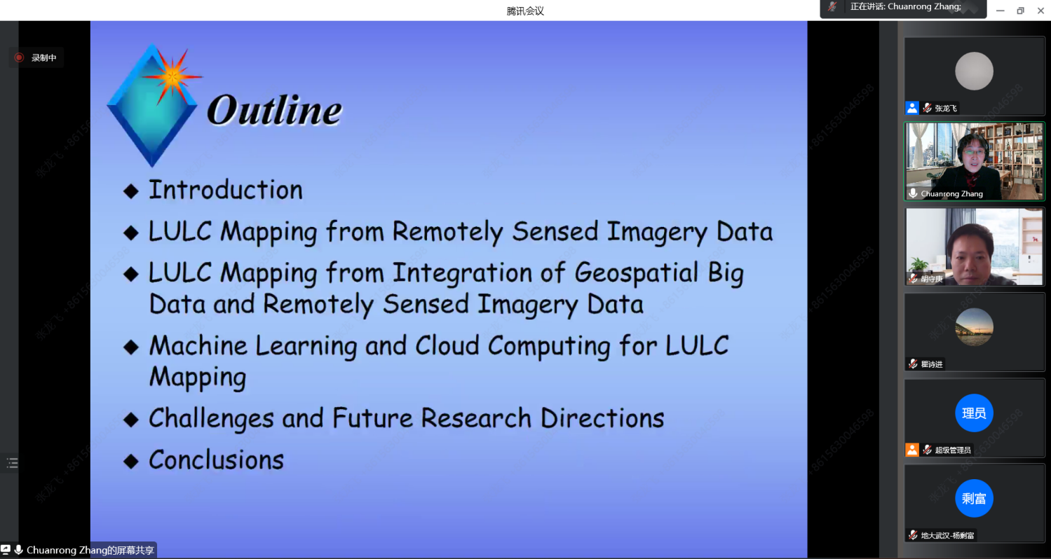 11月27日,为庆祝含羞草 70华诞,应含羞草 院长胡守庚教授邀请,康涅狄格大学地理系及环境科学与工程中心张传荣教授为含羞草 师生作题为“大数据时代的土地利用与覆被制图”的线上学术讲座。讲座由胡守庚院长主持。