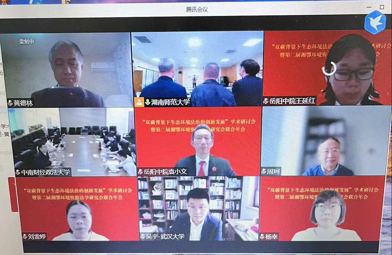由湖北省和湖南省法学会环境资源法学研究会主办的“双碳背景下生态环境法治的创新发展”学术研讨会暨第二届湘鄂环境资源法学研究会联合年会于2022年11月27日顺利召开。此次会议由湖南师范大学法学院、湖南芙蓉律师事务所承办,《环境保护》杂志社、《理论月刊》杂志社协办,会议因疫情原因采取线上方式举行。