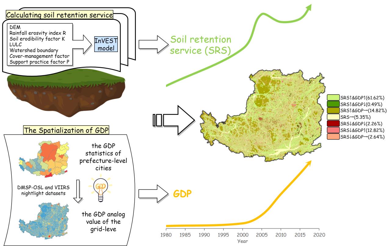 图形摘要:土壤保持服务与GDP的时空关系