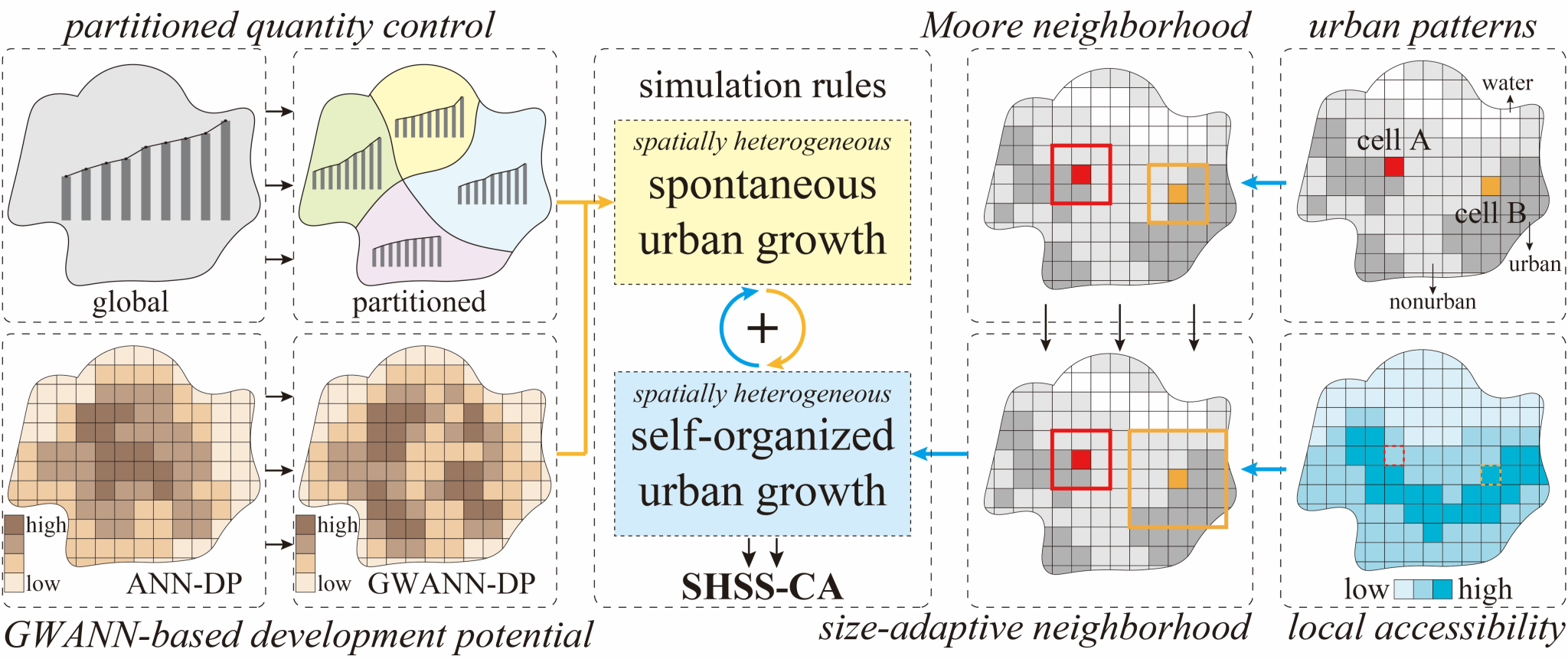 (武汉)胡守庚教授、张彬副教授等发表系列论文,提出了自然和自组织扩展过程耦合的城市空间扩展模拟方法,为精细化模拟城市空间扩展过程提供了新思路,能够有效支撑国土空间规划和城市更新等工作任务。