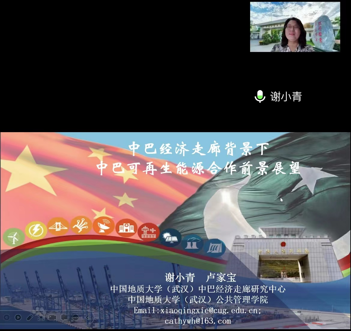 谢小青副教授与卢家宝同学参加2023慕峰论坛·中巴经济走廊国际学术研讨会,并做会议主题报告《中巴经济走廊背景下中巴可再生能源合作前景展望》。报告指出,目前中巴经济走廊建设为中巴可再生能源合作带来了巨大的机遇。巴基斯坦可再生能源丰富、发展前景良好,中巴可再生能源合作有助于为巴基斯坦电力可持续、可负担的供应提供渠道和力量。加速能源供给的多样化,是缓解巴基斯坦“电荒”的重要举措。可再生能源的使用不仅促进巴基斯坦缓解经济压力,同时也促进巴基斯坦国内减贫。