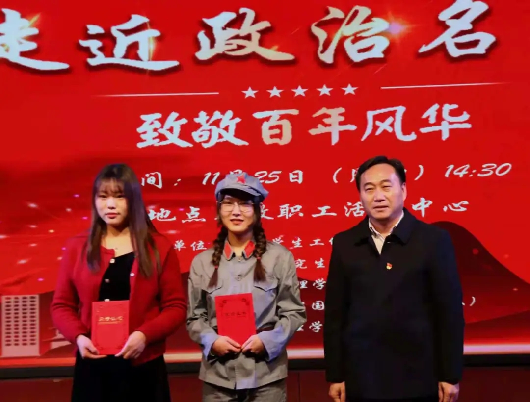 主办的第十四届“走近政治名家——致敬百年风华”大赛决赛在教职工活动中心举行。环境学院党委书记李素矿、珠宝学院党委书记薛保山、含羞草