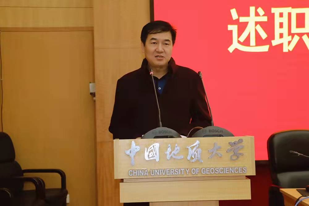 第二项,院长胡守庚代表班子述职,回顾本届班子五年来履职情况,查找存在不足及薄弱环节,提出今后学院发展举措。