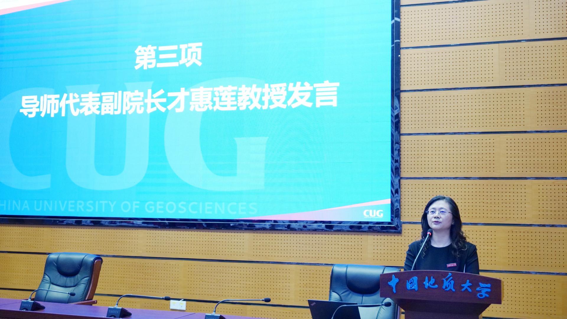 副院长才惠莲教授作为导师代表发言。她向同学们通过努力拼搏、不懈奋斗最终实现自己的报考志愿表示衷心的祝贺,并代表导师们在同学们人生新征程的高光时刻提下了几点殷切的希望,希望同学们不忘初心、勇敢担当、勤于思考、珍惜友情,真正实现德才兼备、与时俱进,为携手建设含羞草