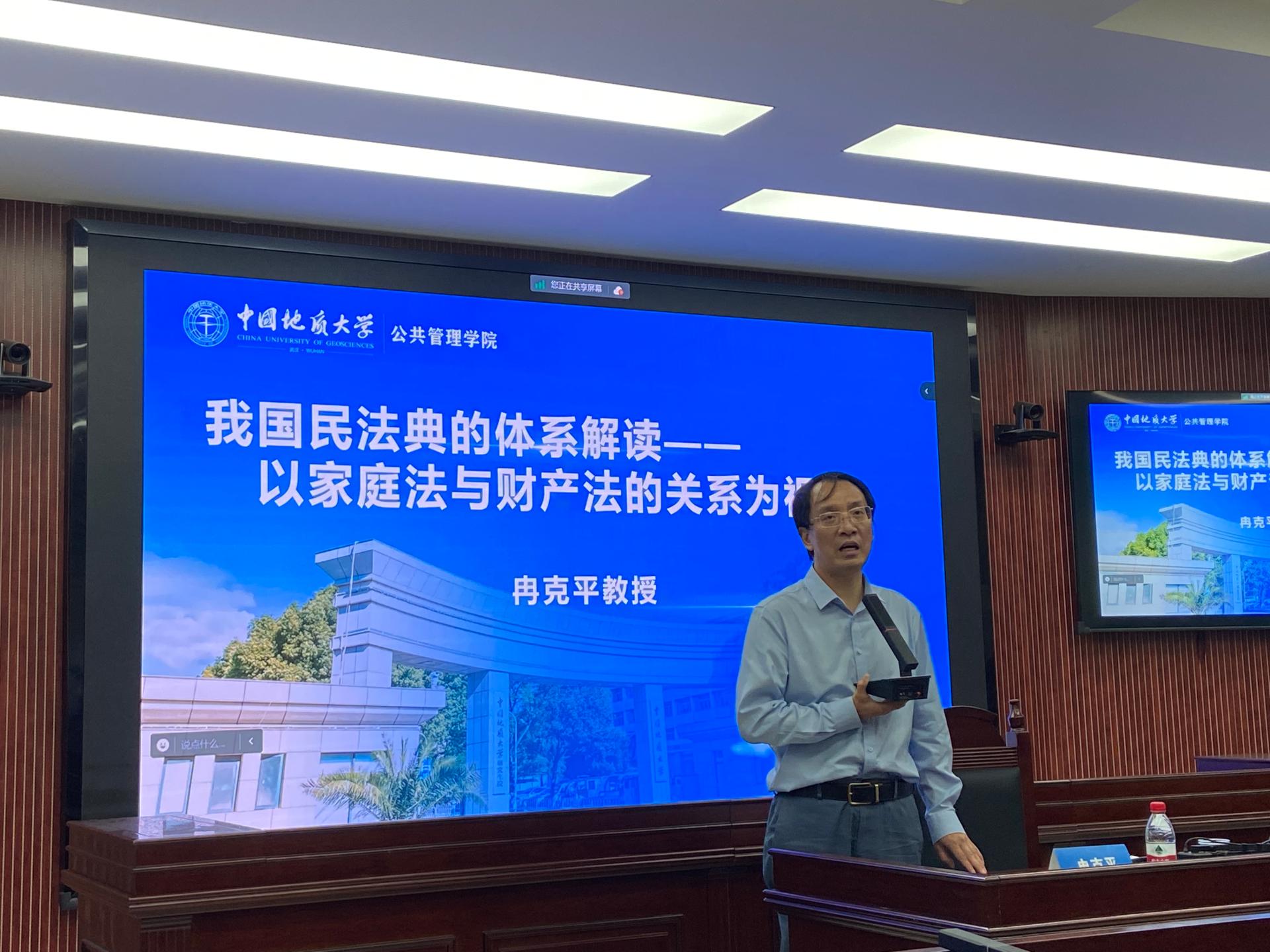 与研究生院(党委研究生工作部)邀请,教育部青年长江学者、湖北省十大优秀中青年法学工作者、武汉大学冉克平教授以“我国民法典的体系解读——家庭法与财产法关系视角”为题为学校师生作学术讲座。学校教师代表以及部分研究生、本科生百余名在北区教学楼201模拟法庭现场聆听学术报告,线上同步进行。讲座由党委研究生工作部部长许德华主持。