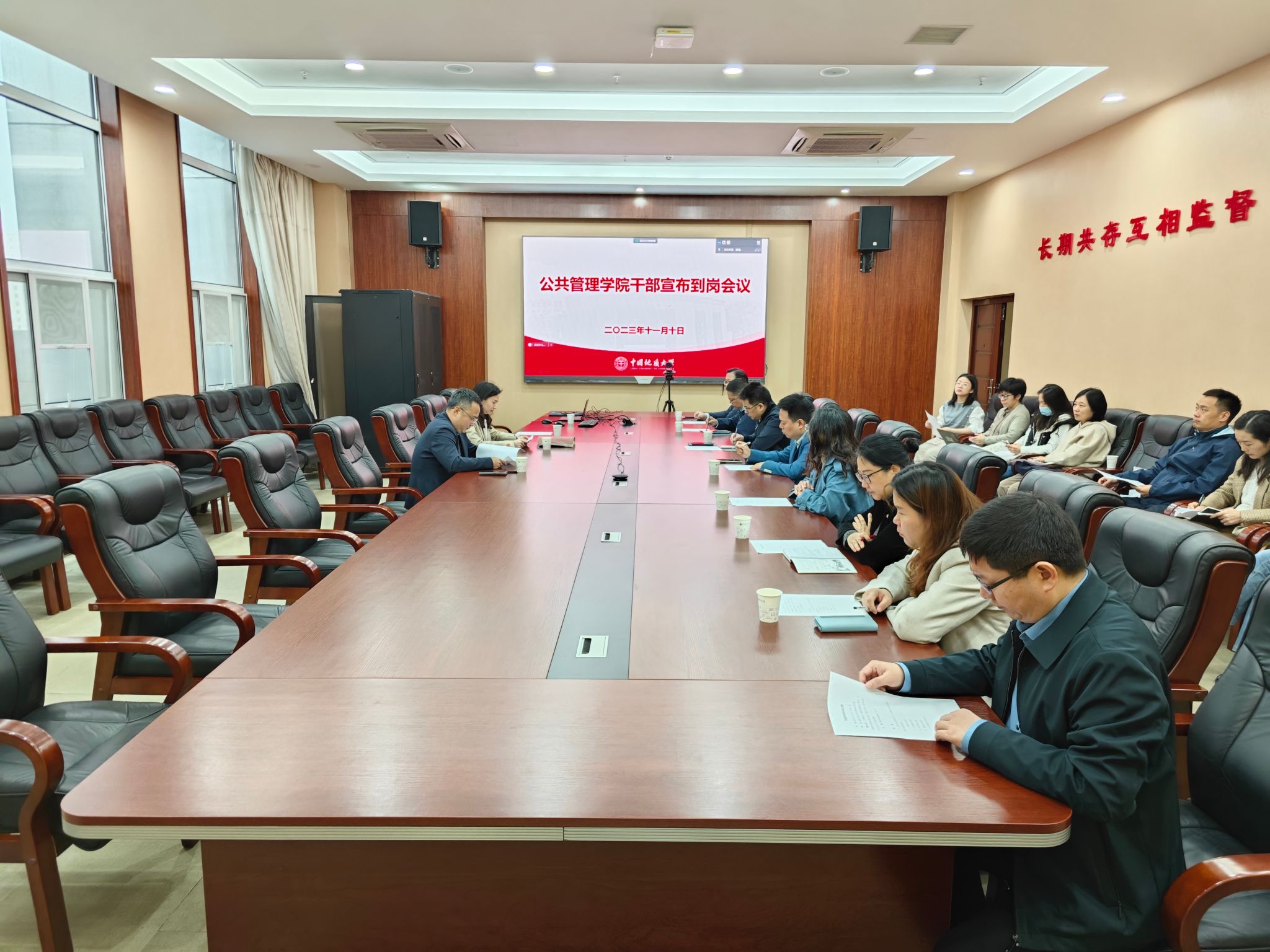 胡守庚院长表示非常感谢学校党委和行政对学院发展建设的关心和大力支持,欢迎吕凌燕同志加入学院的行政班子,衷心感谢才惠莲同志长期以来为学院事业的无私付出和作出的重要贡献。学院班子成员一定会全身心投入,帮助吕凌燕同志尽快融入工作角色,适应学院管理工作节奏,更好地推进学院事业高质量发展。