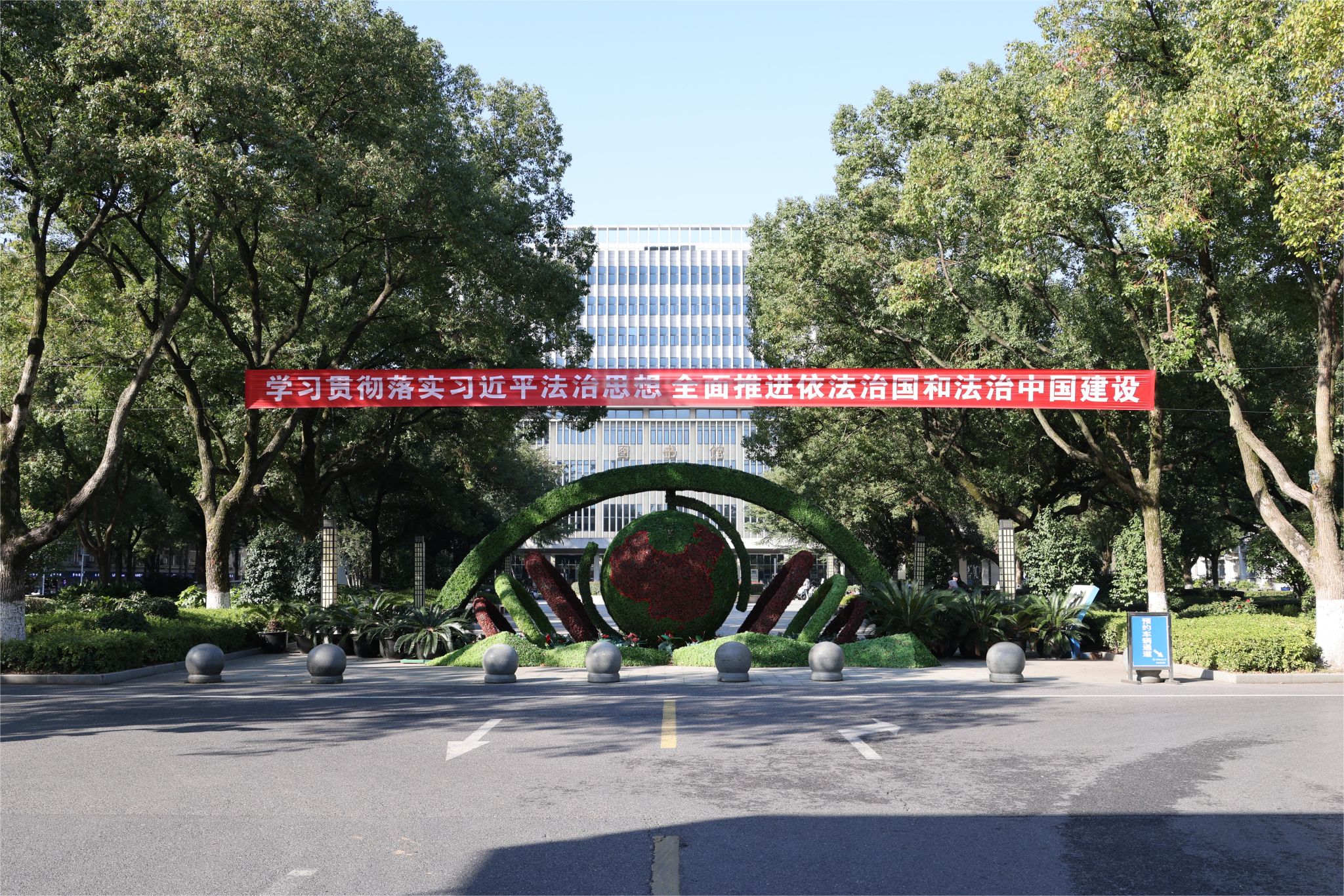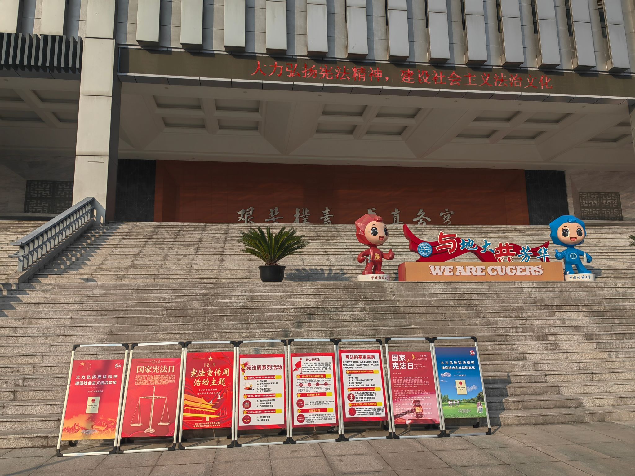 在南望山校区东区教学综合楼A703会议室,通过普法网观看直播,在全校范围内掀起学习宪法的高潮。全校师生跟读宪法部分条款,跟唱《宪法伴我们成长》歌曲,观看第八届全国学生“学宪法讲宪法”活动全国总决赛演讲比赛优秀选手展演,聆听全国法工委领导宣讲宪法、教育部领导讲话。