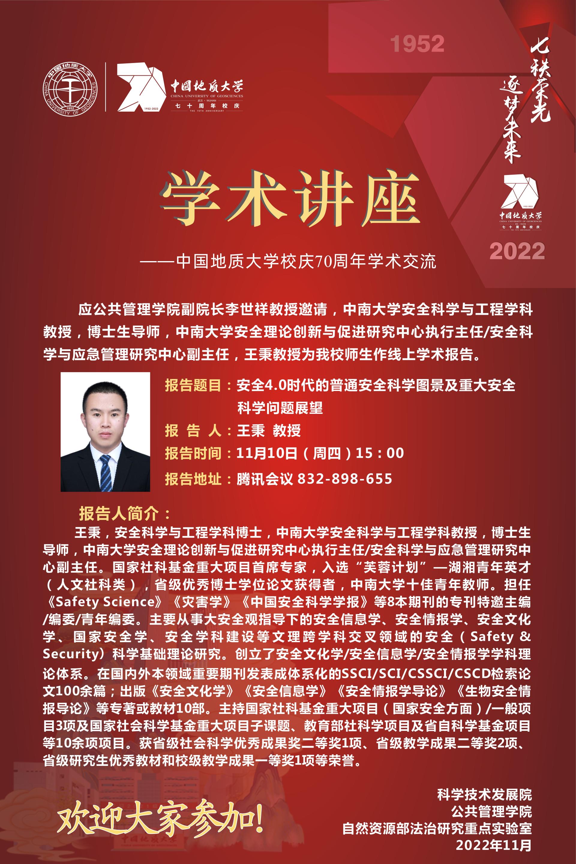 【讲座预告】安全4.0时代的普通安全科学图景及重大安全科学问题展望(2022年11月10日)