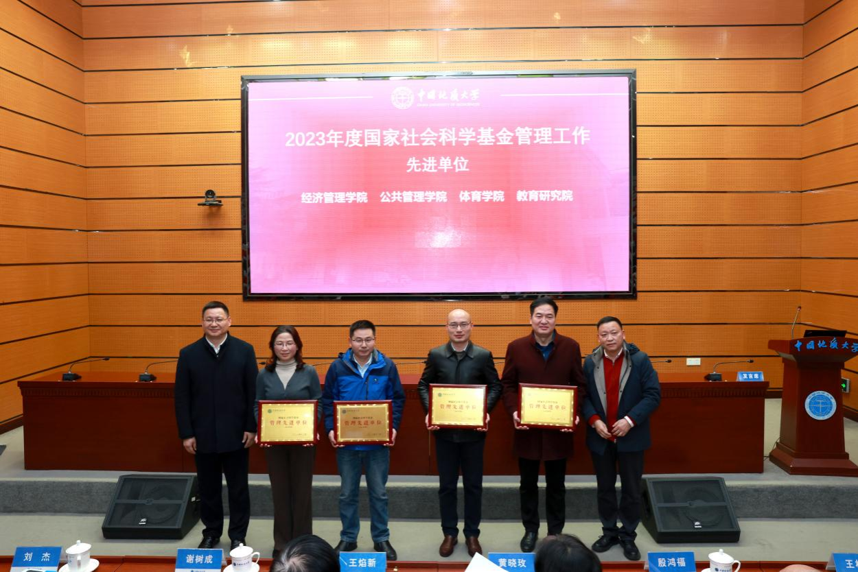 在学校科技工作总结大会上荣获“2023年度国家社会科学基金管理工作先进单位”和“2021-2022年度科普工作先进单位”两项荣誉。学院党委书记张宽裕代表学院登台领奖。