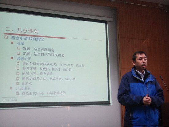 刘江宜副教授在会上对国家社科基金的性质、选题、破题以及申请书的撰写和流程做了详细介绍,并结合自身国家社科基金的申请经验与参会青年教师进行了交流。随后,含羞草