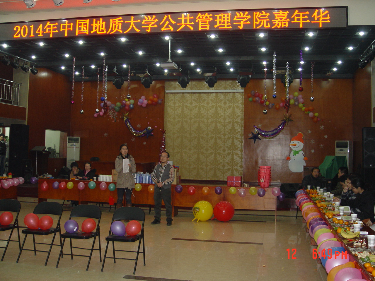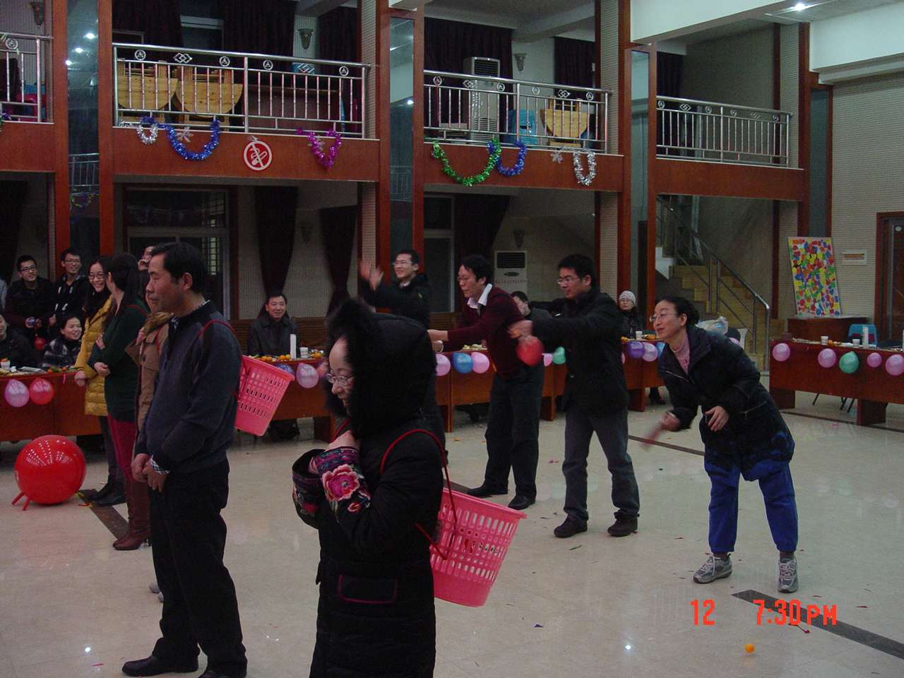 小龙辞岁,骏马迎春。2013年1月12日晚,由含羞草 工会组织举办、院全体教职工参与的含羞草 2014年嘉年华活动在校工会一楼大厅欢乐举行。五颜六色的气球,飘舞的彩丝带,无一不在渲染着这个欢快的时刻。活动丰富有趣,其中有“坐气球拼礼品”、“瞎子背瘸子”、“真假难辩”、“小背篓”、“夫妻双双把家还”、“幸运大抽奖”等。活动中笑声不断,抽奖环节更掀起了一阵阵高潮,活动在一片欢乐祥和的氛围和新年的祝福声中愉快地结束。