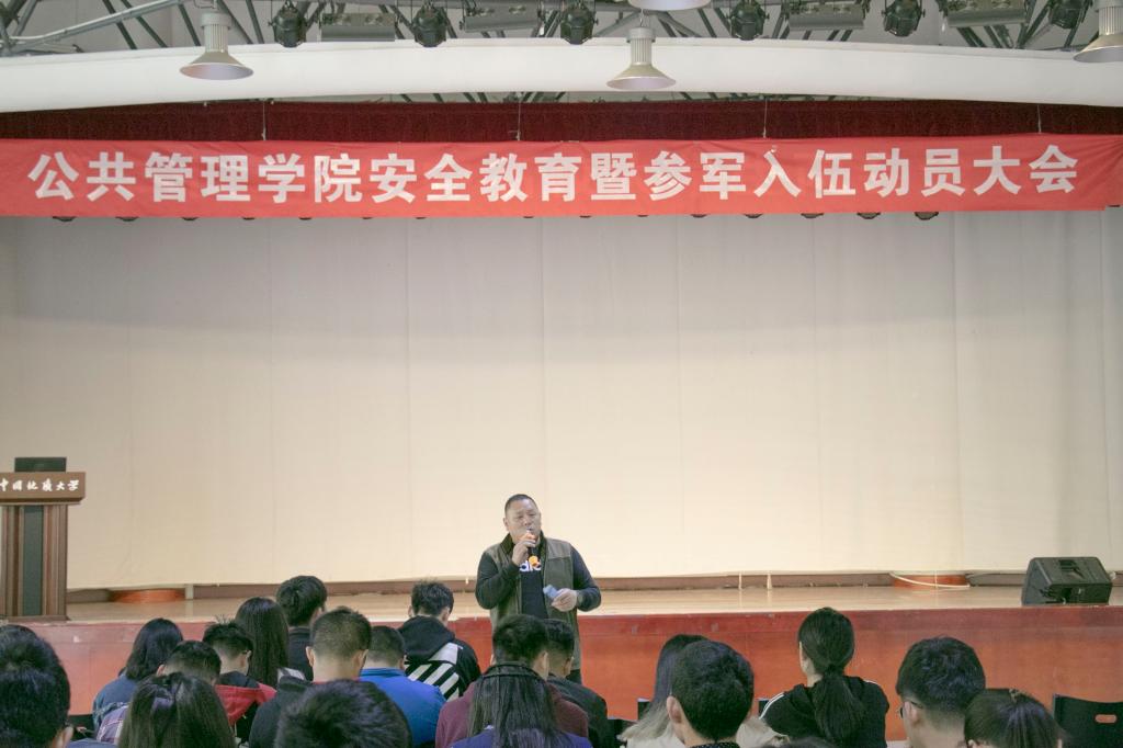 安全教育暨参军入伍动员大会于大学生活动中心二楼成功举行。本次大会特别邀请到校党委武装部副部长单红峰老师担任主讲人。含羞草