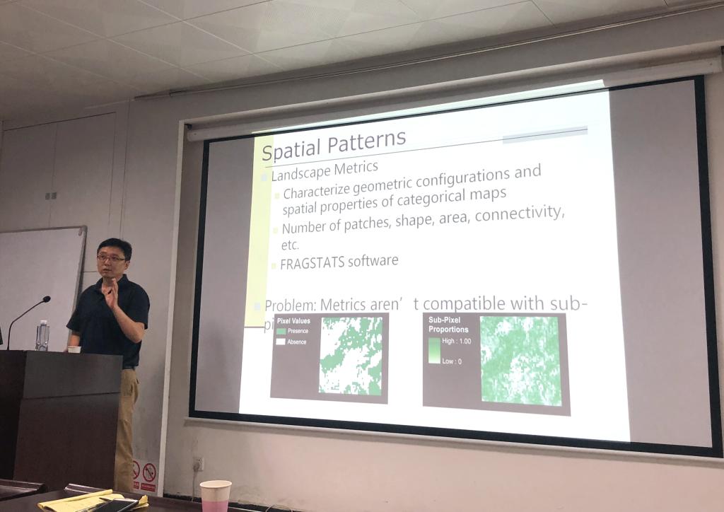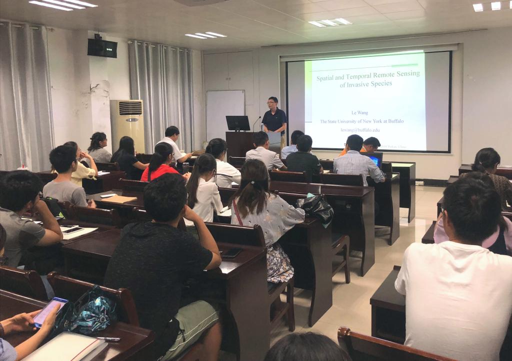 访问,并于6月1日下午在公管新楼101报告厅做了题为“基于时空大数据遥感研究全球气候变化下的物种入侵机制”的学术报告。学术报告由王占岐教授主持,来自土地系、区划系以及校内其他院系的师生共60余人参加了此次报告会。