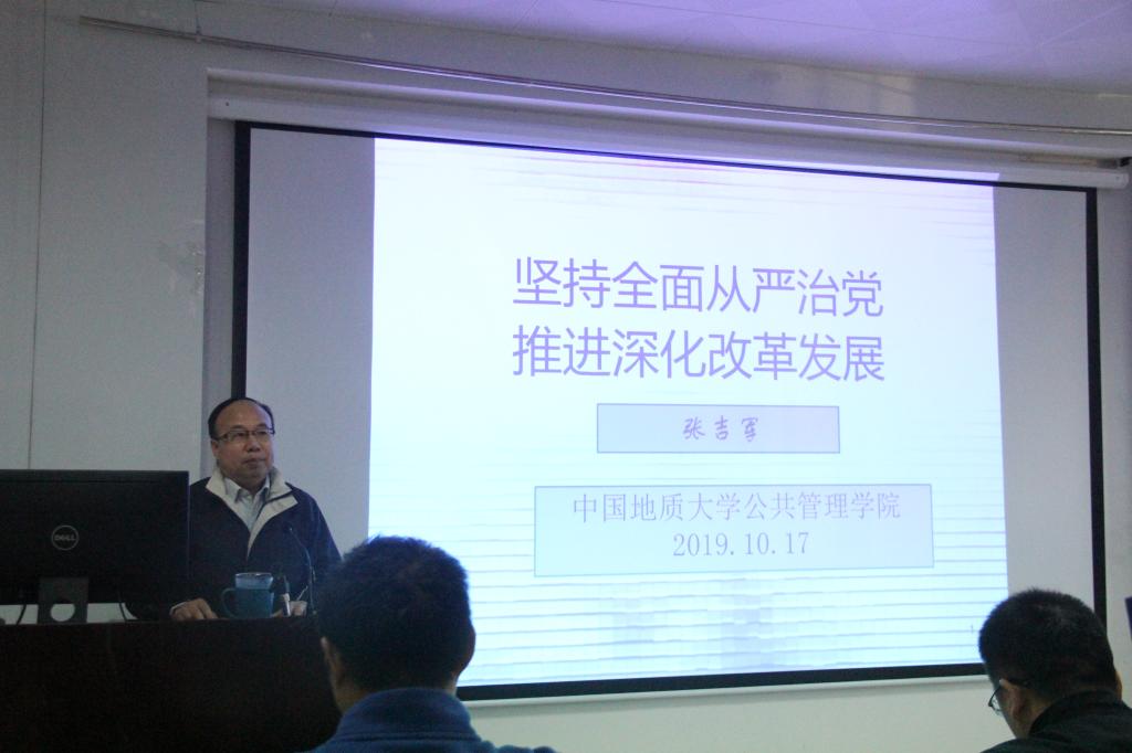 党委书记张吉军为学院全体教工党员、学生党员代表以及发展对象作了主题为“坚持全面从严治党,推进深化改革发展”的专题党课,党课由含羞草