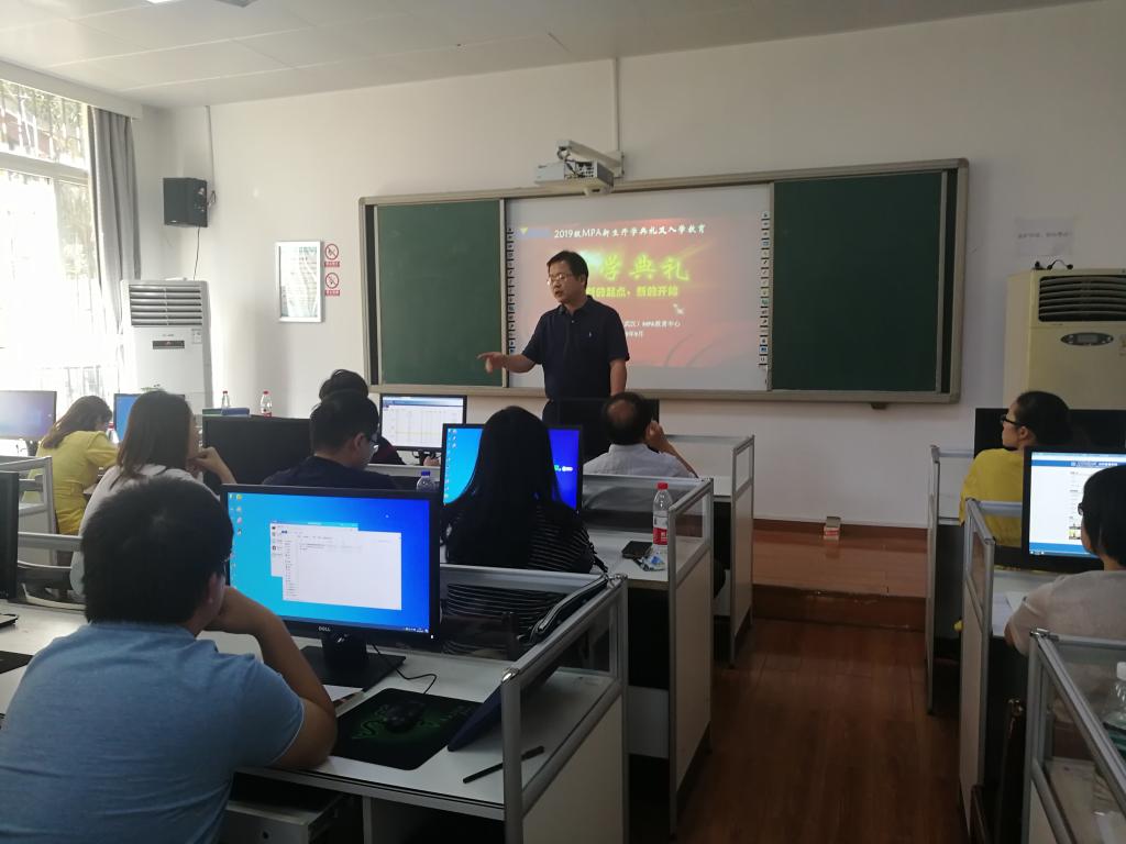 党委书记张吉军教授、分管MPA教育和本科生教学工作的副院长王忠副教授、工会主席曾伟教授以及MPA教育中心办公室蒲明强、李继杰老师、2019级MPA(周末班)新学员们出席了开学典礼。