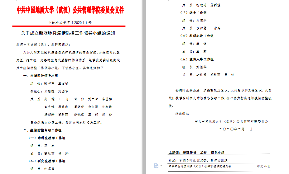 学院教师李世祥、学生何子耕等25名师生主动报名参与社区志愿服务工作,投身抗疫劳动一线。1993级行政管理专业毕业生李飞,才下火神山再战雷神山,一全身心都扑在医院建设上,做好项目建设的后勤保障、内外部总协调工作,选择逆行的普通人,选择担当的共产党员,被新浪网、校内新闻网等报道。