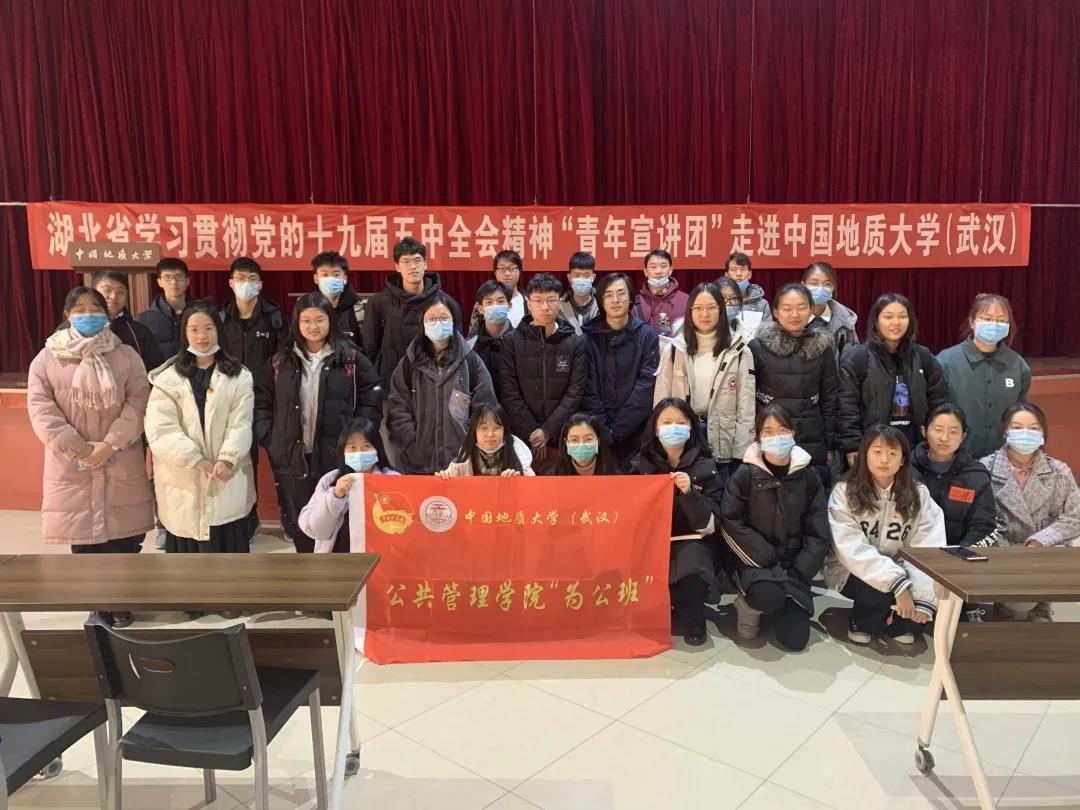 典礼议程进行到了最后一项,“为公班”的同学们集体参与了湖北省学习贯彻党的第十九届五中全会精神“青年宣讲团”走进含羞草