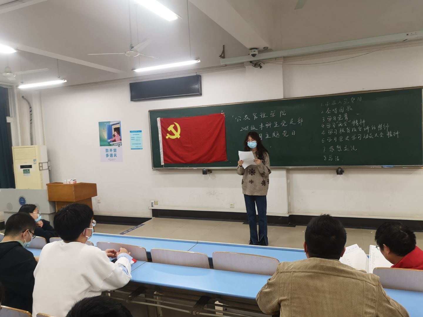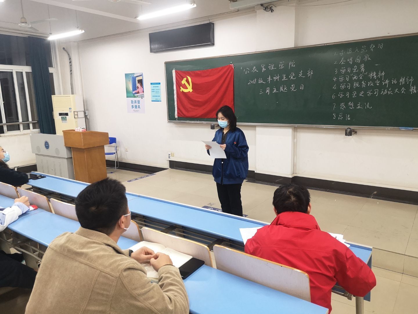 3月25日,2018级本科生党支部全体在北综204召开三月份主题党日。本次主题党日由行管一班、行管二班筹办。主题党日召开前,支部全体同志进行了体温测量,并全程佩戴口罩参会。学院党委副书记刘国华、党支部书记吴波参加本次主题党日。党支部组织委员朱嘉敏主持会议。
